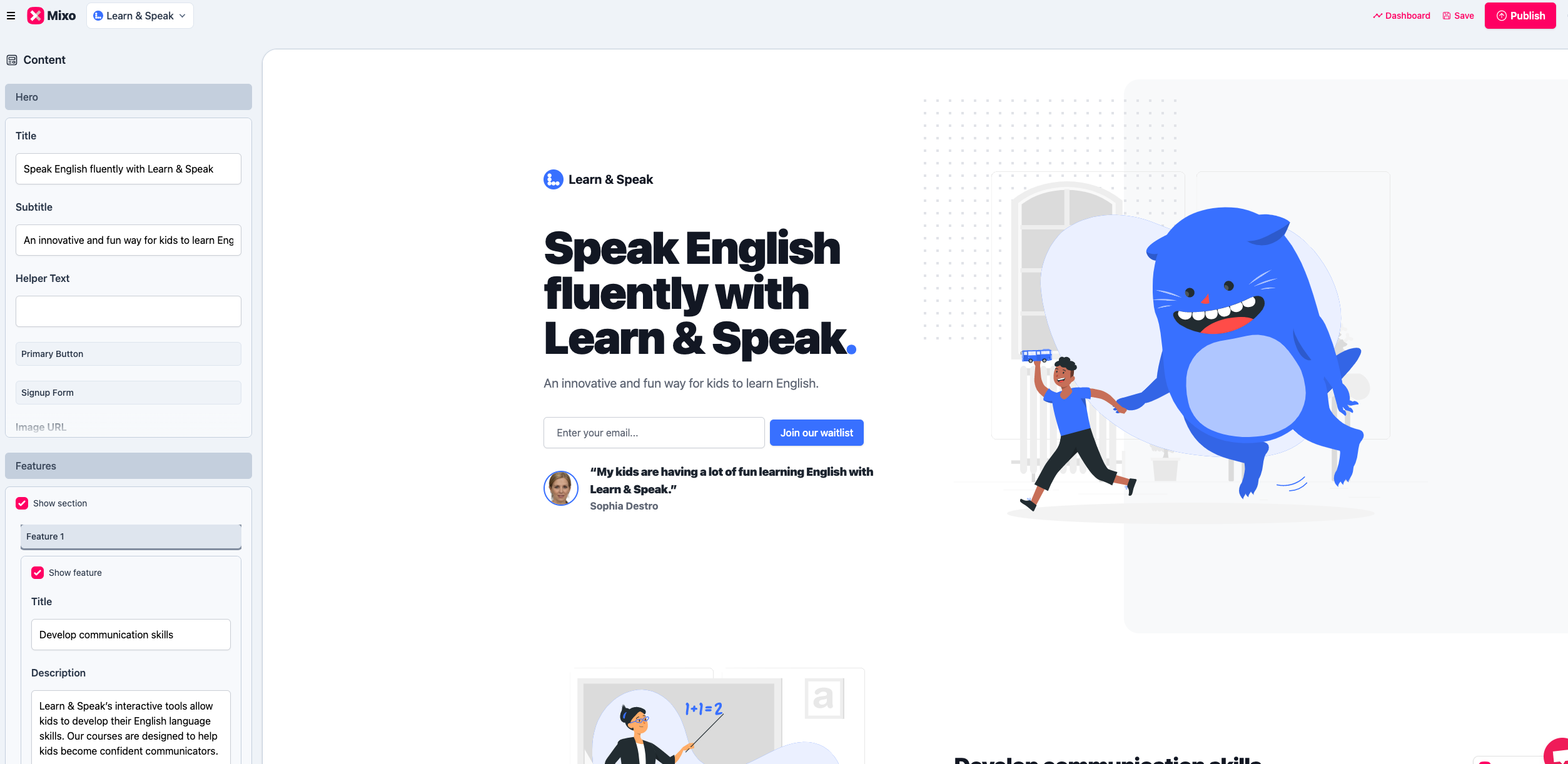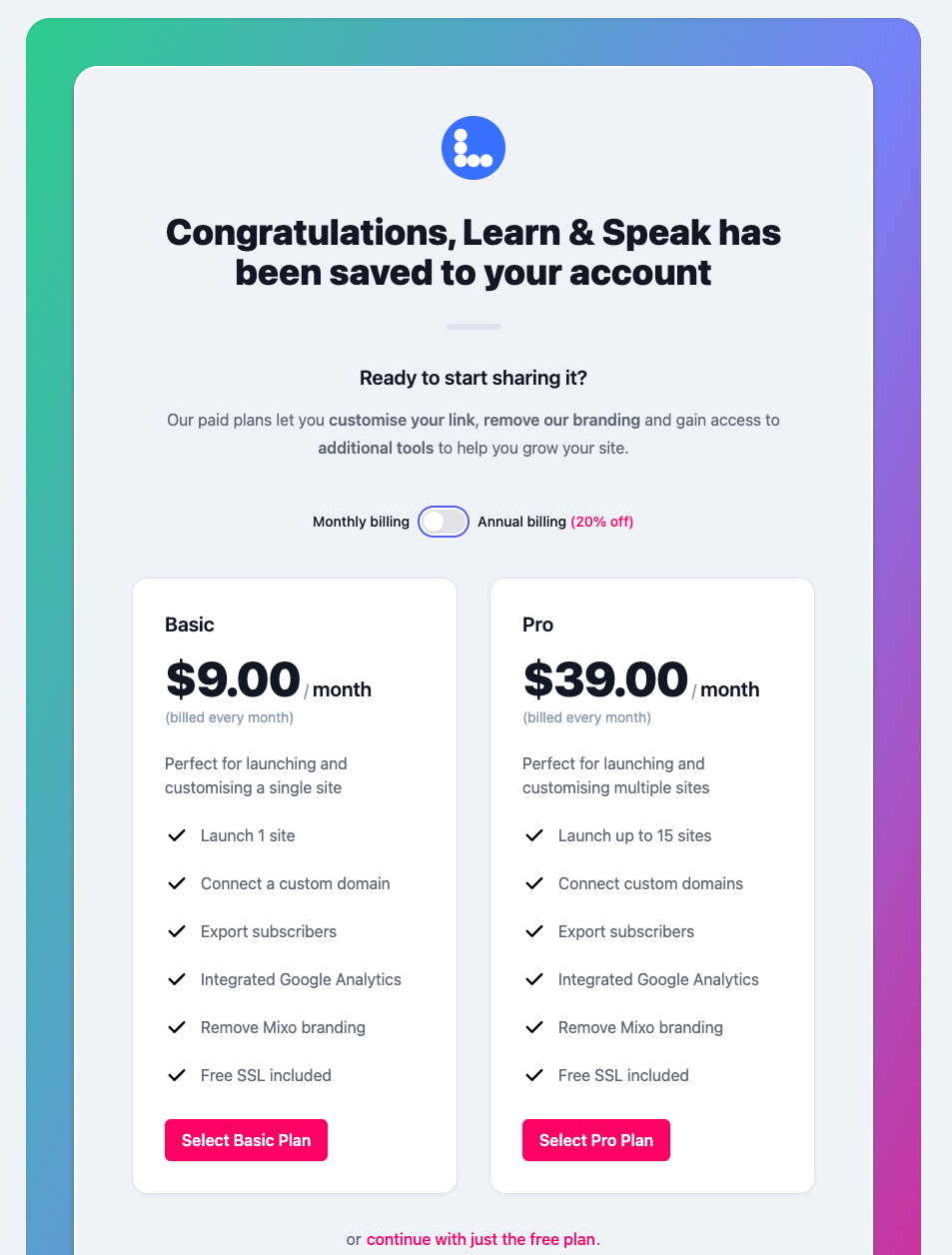 “Starting a business is overwhelming and, quite frankly, confusing. Mixo helped me get started and gave me the confidence in my idea. It became super exciting and fulfilling to see customers signing up for my courses.”